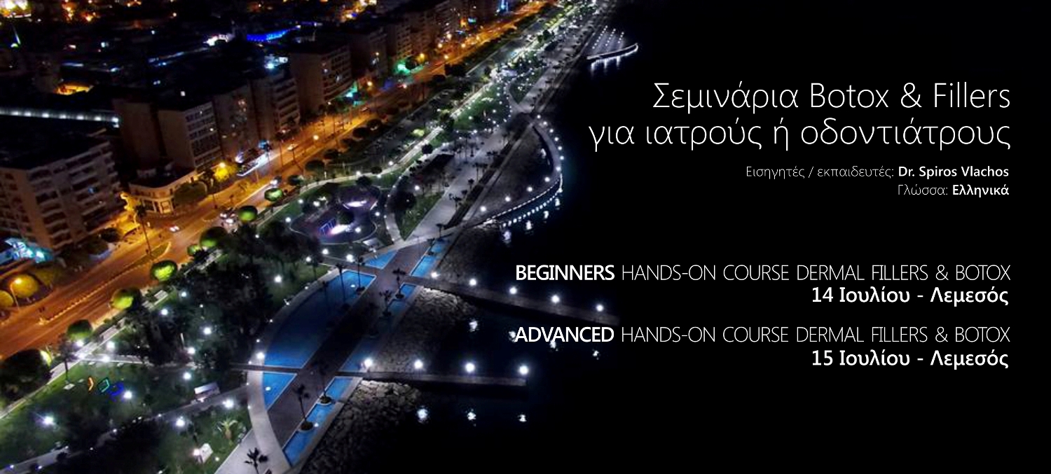 Lecture / Trainer: Dr. Spiros Vlachos[x_line style=”border-top-width: 1px;”]Το σεμινάριο απευθύνετε μόνο σε Ιατρους και οδοντίατρους που παρακολούθησαν τα Beginners Course. Θα περιέχει θεωρητικό και πρακτικό μέρος για την εφαρμογή ενέσιμων εμφυτευμάτων στις περιοχές κάτω από τα μάτια, στα μάγουλα και την μύτη καθώς και ειδική αναφορά στο ”Facial Contouring”.